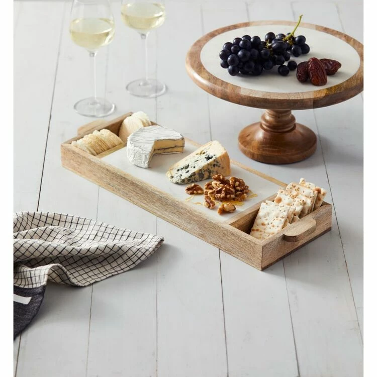The Academy Eliot Serving Caddy Natural/White 46x15x4cm is perfect for serving a variety of delicious nibbles when entertaining. This serving caddy features deep compartments on either side that are great for crackers and wafers and has feature handles for ease of transport at special events or house parties.