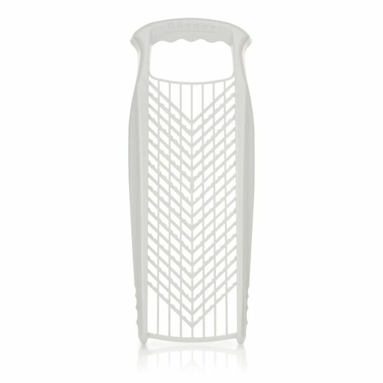 The original Borner Grater Powerline White with double side grates fine and coarse materials. It is ideal for grating vegetables, cheese, chocolate, citrus fruit peelings, carrots, radish or apples and much more. A practical helper when it comes to preparing your meals. After use simply clean under running water. The Food Safety Holder is Not included and can be purchased separately.
