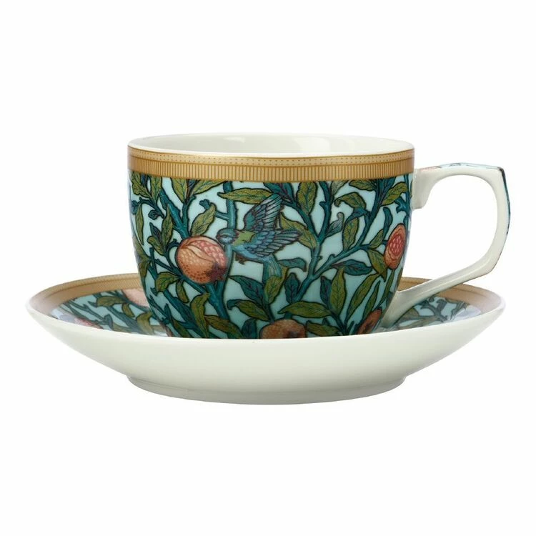 Casa Domani William Morris Cup & Saucer 240mL Bird & Pomegranates Gift Boxed