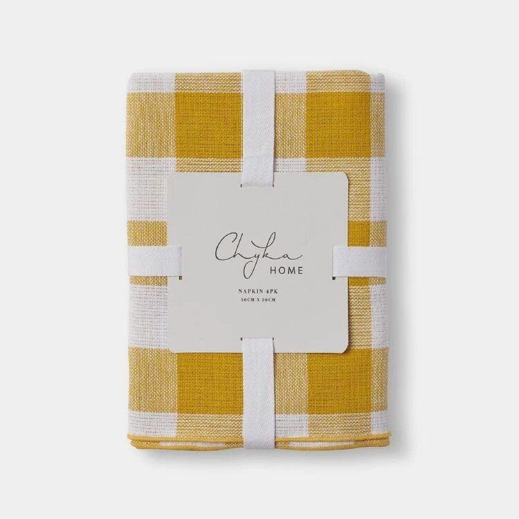 Chyka Home Chyka Gingham 4 Pack Napkin 50x50cm Mustard