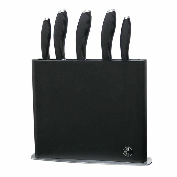 The Circulon 6 Piece Black Knife Bock Set features hi-low groove handles designed for ultimate control, improved grip and comfort. This beautifully presented compact knife block will keep your knives sharp and safe. Shop the Circulon range from Harris Scarfe today!