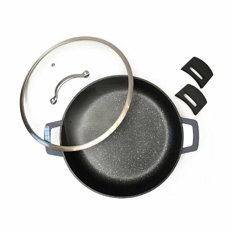 The Classica Diamond Stone Diecast Chef Pan 32cm features a non stick surface, removable silicone handles and a quality diecast aluminium built, perfect for professional chefs and home cooks alike who love a good meal. This chef’s pan is ideal for frying, searing, sautéing or boiling eggs, and is diswasher and oven safe for added convenience.