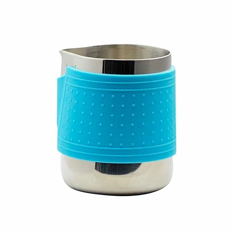 Coffee Culture Stainless Steel Milk Frothing Jug With Blue Silicone Sleeve 350mL