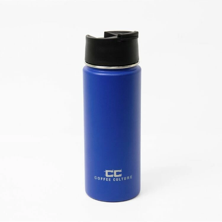 The perfect modern accessory for any coffee lover on the go, this Coffee Culture Travel Flask With Sipper 500mL Blue will keep your favourite brew warm and safe! It features a heavy duty construction and air-tight vacuum seal technology, with a sleek stainless steel body for durability and quality. Stop and smell the coffee with this Coffee Culture travel flask!