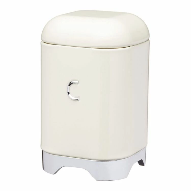 The Kitchencraft Lovello Coffee Canister 11x18cm 1.5L Cream is a kitchen essential, featuring a retro design and raised mirror polished lettering that clearly labels the tin with a “C” for Coffee. This Coffee tin sits perfectly alongside the sugar and tea tins, bringing delightful charm to your kitchen. Designed to maximise your worktop space and reduce clutter with space effective curved contours and elevated base. Shop the Kitchencraft Lovello range today at Harris Scarfe!