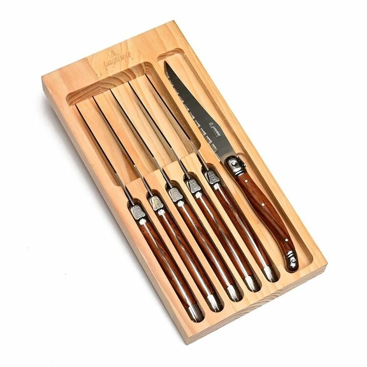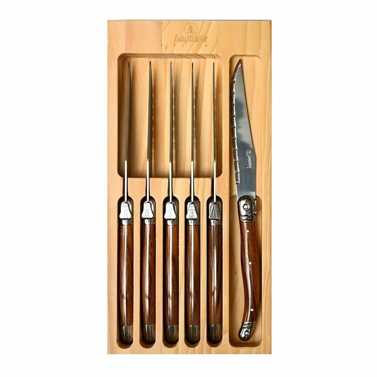 The Laguiole Elite Wood Finish 6 Piece Knife Set is a stylishly modern choice for the contemporary kitchen. These set of 6 knives feature handles made of premium wood reinforced with stainless steel. They are designed to provide durability and sharpness that’ll last for years to come. Shop the full Laguiole Elite range, available online and in-store at Harris Scarfe.