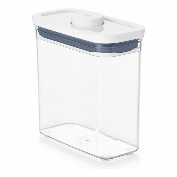 The OXO Good Grips Pop 2.0 Slim Rectangle Short is airtight, stackable, space-efficient, and completely dishwasher safe. The OXO Good Grips POP Containers keep dry foods fresh and kitchens organised. New shapes and sizes provide new possibilities for storing everyday must-haves like flour, sugar, coffee, cereal, oatmeal, coffee, grains, pasta and spices. With a handy fill line to guide you, curved corners for smooth dispensing and sturdy, BPA-free construction, these canisters take tidying to the next level. POP Containers aren’t just for kitchens: use them any place you want more organisation.