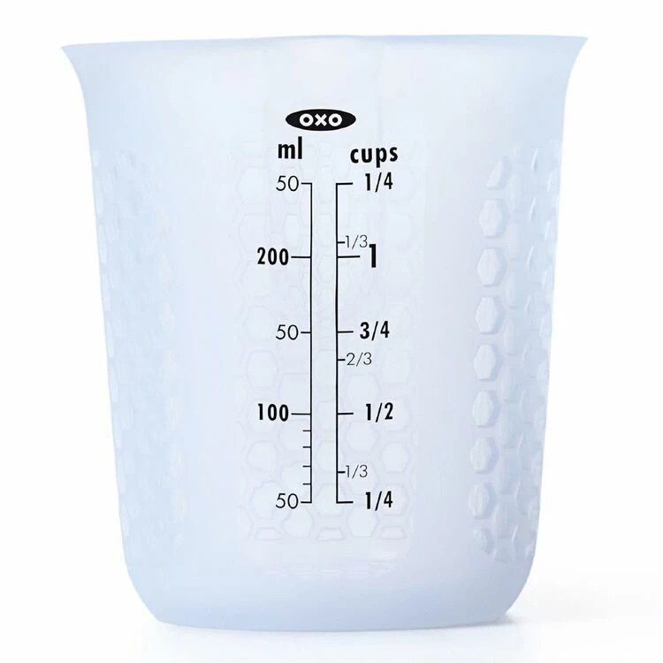 With a flexible body and spout, the OXO Good Grips Squeeze And Pour Silicone Measuring Cup 1 Cup/250mL makes it easy to mix, measure, microwave and pour all from the same measuring cup. The specialized honeycomb pattern protects your hands by dissipating heat and a simple squeeze forms a precise pour spout. Shop the full range of sizes, online and in-store at Harris Scarfe!