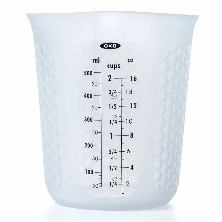 With a flexible body and spout, the OXO Good Grips Squeeze And Pour Silicone Measuring Cup 2 Cup/500mL makes it easy to mix, measure, microwave and pour all from the same measuring cup. The specialized honeycomb pattern protects your hands by dissipating heat and a simple squeeze forms a precise pour spout. Shop the full range of sizes, online and in-store at Harris Scarfe!