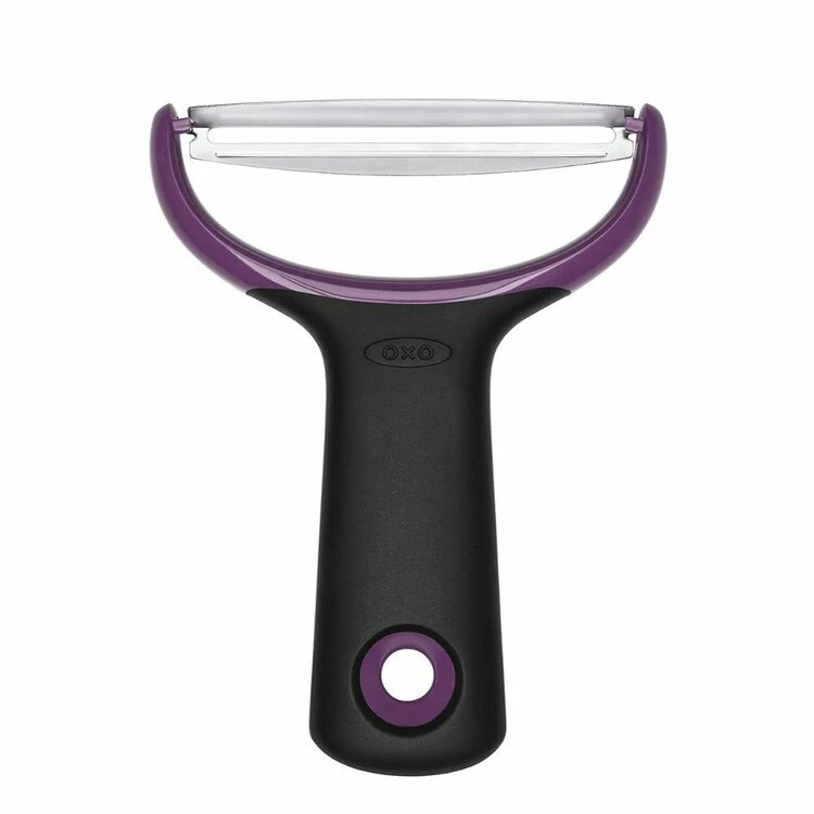 The OXO Good Grips Large Vegetable Prep Peeler makes quick work of big veggies like butternut squash, pumpkin, eggplant and even cabbage. The wide, sharp, Japanese stainless steel blade sails through thick skins, peeling produce with just a few swipes. The Y-peeler design prevents bruising and promotes fatigue-free prep. With an ergonomic, non-slip handle and rustproof, dishwasher-safe construction, you’ll reach for this peeler again and again.