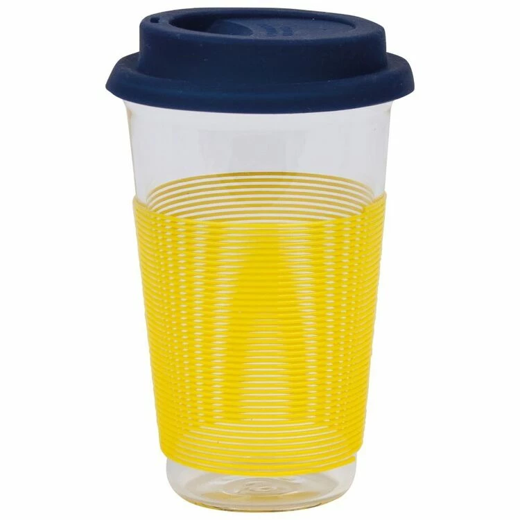 This Porta Summer Fun Yellow & Navy Travel Mug is suitable for a range of beverages. Made from quality Borosilicate glass, this reusable cup offers excellent thermal protection. A printed silicone design also works to protect hands from the heat. The Porta Summer Fun range includes everything from insulated lunchware to drink bottles and travel mugs. Choose from a variety of fun mix and match colours, shapes and patterns!