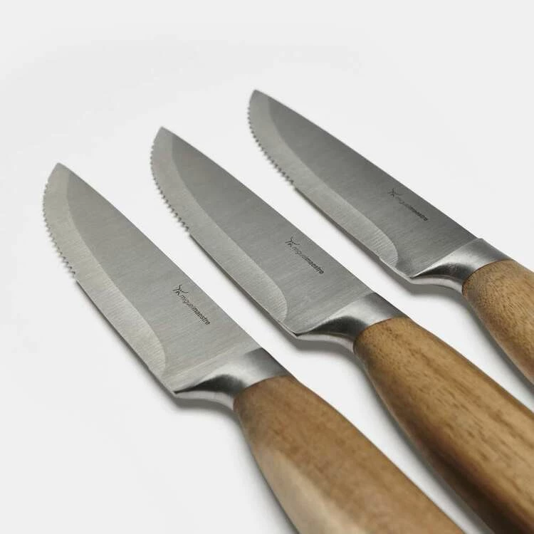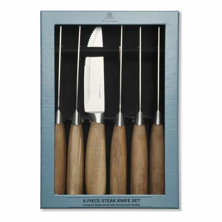 The S&N by Miguel Maestre 6 Piece Steak Knives Set with Acacia Handle features 6 high performance Smith & Nobel steak knives, perfect for any kitchen. These steak knives feature a high quality stainless steel body and sleek acacia wood handle, providing both style and modern functionality. Shop Harris Scarfe’s full range of kitchen accessories, online and in-store today!