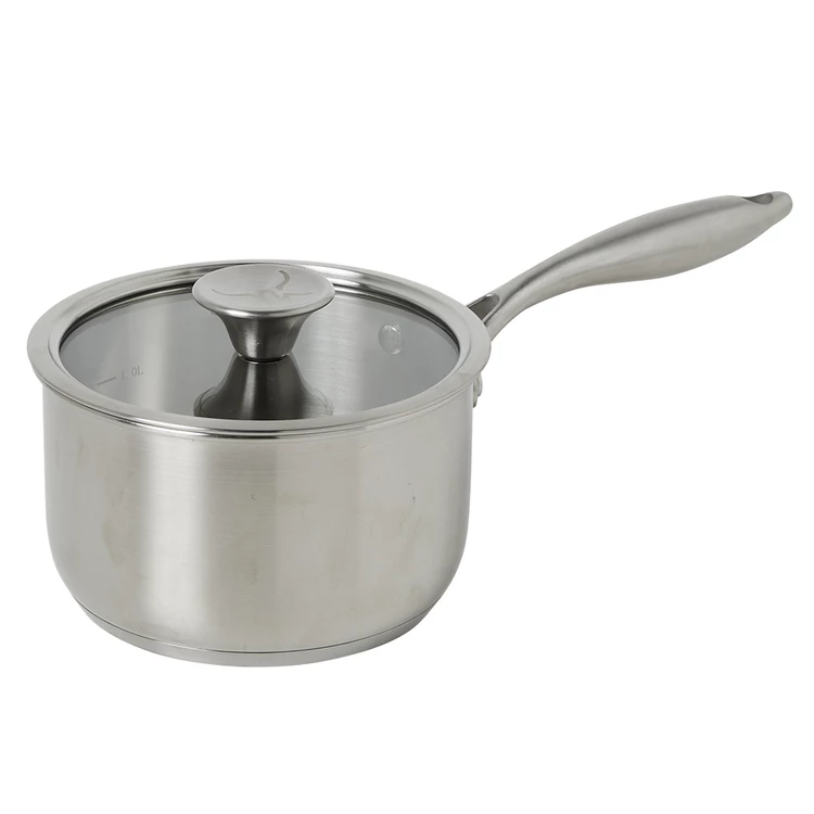 The S&N by Miguel Maestra Stainless Steel Saucepan 16cm is crafted from 304 quality stainless steel with a satin finish, designed to withstand high temperatures.