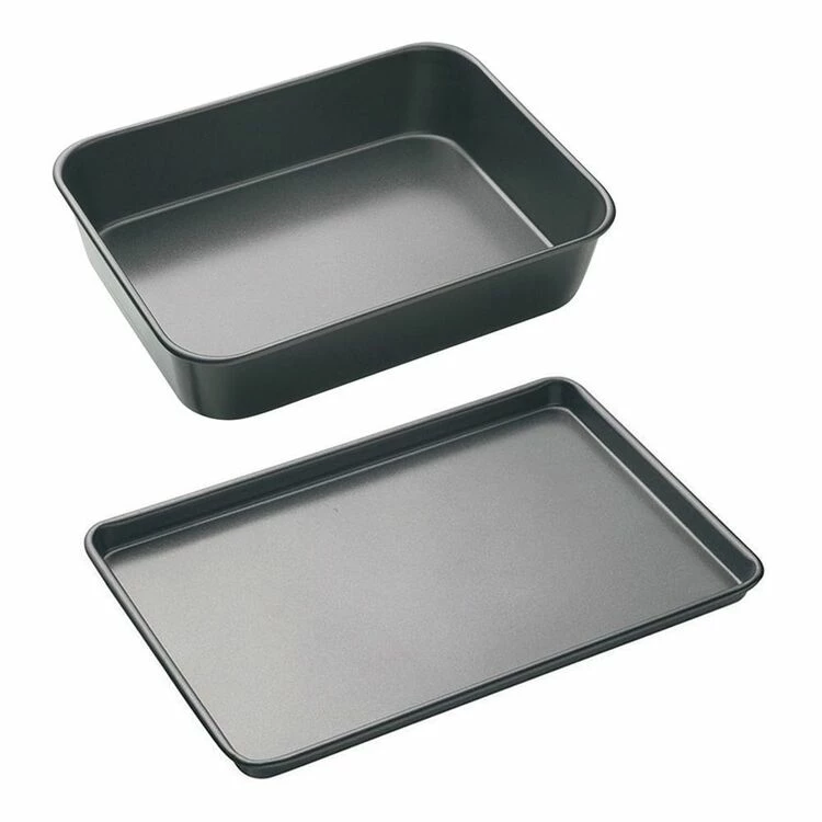 The ultimate in modern bakeware, this handy and versatile Smith & Nobel Professional Non-Stick Bakeware Roast Baking 2 Pack will sort all your baking and roasting needs! It features a durable and heavy-duty carbon steel body with a double non-stick coating for easy use and clean up. Fill your home with the delicious aroma of homecooked meals and desserts, and surprise your guests!