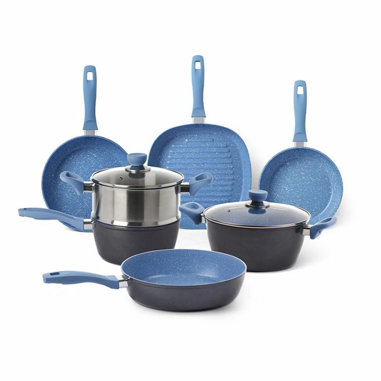 The Smith & Nobel Stone Plus Cerulean 7-Piece Cookset is the perfect set for home chefs, looking to make delicious everyday meals in style. Each piece is crafted from heavy gauge forged aluminium and features a unique speckled non-stick coating design. This set is also a great housewarming or wedding present for your loved ones!