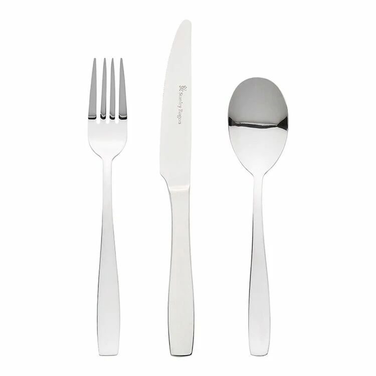 Set contains formal place setting for eight: 8 Dinner Knives, 8 Dinner Forks, 8 Entree Knives, 8 Entree Fork, 8 Dessert Spoons, 8 Soup Spoons, 8 Teaspoons