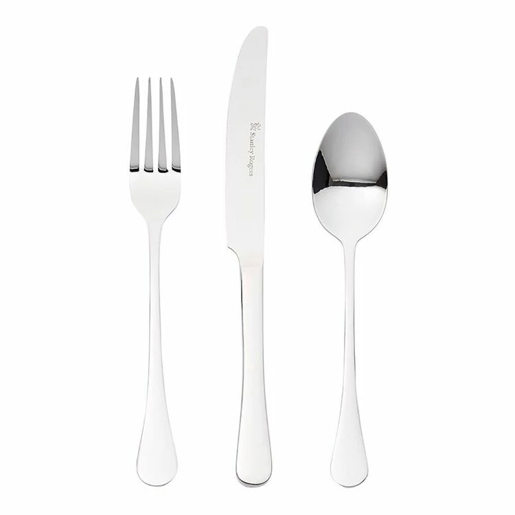 Set contains formal place setting for ten: 10 Dinner Knives, 10 Dinner Forks, 10 Entree Knives, 10 Entree Fork, 10 Dessert Spoons, 10 Soup Spoons, 10 Teaspoons