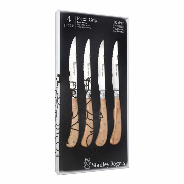 Our iconic Pistol Grip design reimagined in a stunning wood look. Easy-cut serration allows the blade to glide through effortlessly. Full tang and triple rivets gives it strength to last for years. 10 year guarantee.