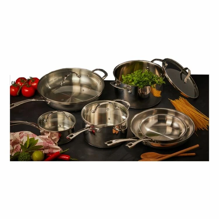 | Features | 18/8, stainless, steelBright, mirror, polishInduction, compatibleImpact, bonded, baseVented, glass, lids |