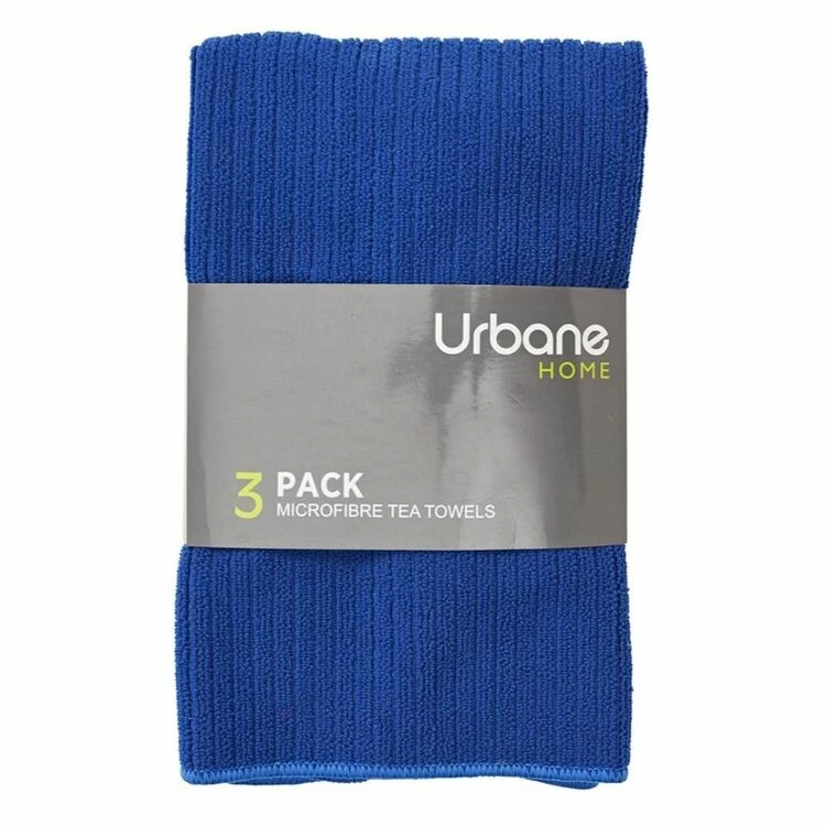 Keep your kitchen as clean as a whistle with the Urbane Home Microfibre 3 Pack Tea Towel Blue Stripe. Featuring a range of colours, these tea towels are absorbent and durable, designed to clean up spills and dry dishes effortlessly.