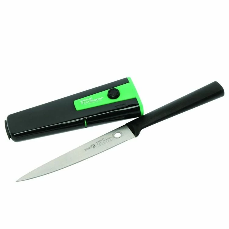 Perfect for cutting fruit and small vegetables and a variety of herbs, this Wiltshire Staysharp Utility Knife makes light work of food preparation with its Staysharp blade. Thanks to the patented self-sharpening system you can ensure no more blunt knives.